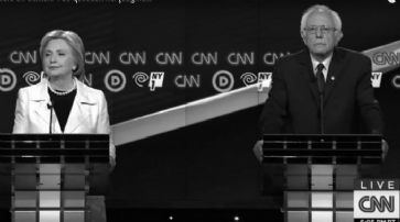 Hillary Clinton und Bernie Sanders bei der TV-Debatte. /