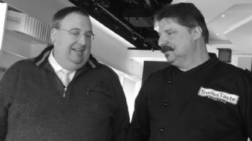 Nudeln, Spaghetti Heute sind es nicht die nach allgemeiner chinesischer Ansicht klobigen Essgeräte wie Messer, Löffel und Gabel, die Chinesen im Ausland abschrecken. Nein, es ist schlicht das westliche Essen. Auch die französische Nobelküche. Sie liegt vielleicht etwas schwer auf dem chinesischen Magen. Mit italienischer Pasta können sich Touristen und Geschäftsleute selbst ohne Essstäbchen zur Not gerade noch abfinden, zumal ihrer historisch falschen Ansicht nach ja Marco Polo im 13. Jahrhundert Nudeln und Teigtaschen mit nach Italien gebracht haben soll, wo dann Spaghetti und Ravioli ihren Siegeszug um die Welt angetreten haben. Drei, vier Tage ohne chinesisches Essen jedenfalls ist für Chinesinnen und Chinesen im Ausland schon ziemlich happig wenn nicht gar unzumutbar. Bei Herr und Frau Schweizer geht es dann schon ein wenig länger. Dennoch, der Wunsch und der Hunger nach heimischer Kost ist auch den Eidgenossen nicht fremd. Nach einer selbstverständlich nicht repräsentativen Umfrage Ihres Korrespondenten unter Schweizer Ferienreisenden und Geschäftsleuten in Asien wird die Lust nach - in dieser Reihenfolge - einem Wurstsalat spezial, einer St. Galler Bratwurst, einer Berner Rösti aus Trubschachen, einer Fondue aus Fribourg oder einem Raclette samt einem Glas Weissen aus dem Wallis mit zunehmender Aufenthaltsdauer im Ausland gross und grösser. Vor zwanzig Jahren schon betrieb deshalb in Hong Kong ein rühriger Schweizer Restaurateur ein Swiss Chalet. Mit grossem Erfolg, auch und gerade unter Chinesen. In der chinesischen Hauptstadt wird seit Jahren in einem Hotel mit dem Namen Swiss, das aber überhaupt nicht mehr in Swiss-Besitz ist, auch schweizerisch gekocht. Doch echter Swiss Taste wollte nicht aufkommen.Poulet im Chörbli, Flammekueche, Rösti Das hat sich nun geändert. Peter Troesch, Absolvent der Ecole Hôtelière de Lausanne (EHL) und dessen chinesische Frau betreiben seit einem Jahr erfolgreich in Pekings Zentralem Geschäftsviertel - Neudeutsch: Central Business District CBC - ein Restaurant unter dem logischen Markennamen «SwissTaste». Die Speisekarte lässt nichts zu Wünschen übrig. Vom Wurstsalat, der Bratwurst und dem Poulet im Chörbli über die Rösti und Züri-Gschnätzletem bis hin zu Risotto, Fondue, Raclette oder dem Flammekueche aus der Romandie fehlt nichts.Der quirlige Swiss Taste Gastronom Peter Trösch und sein Küchenchef Alfred Krasser /