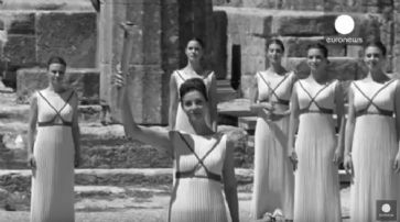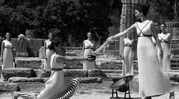 Im Beisein von IOC-Präsident Thomas Bach wurde das olympische Feuer in einer Zeremonie mit Hilfe eines Parabolspiegels und der Sonnenstrahlen entfacht.