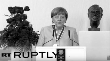 In ihrer Dankesrede bekräftigte Merkel, dass Europa die Flüchtlingskrise gemeinsam lösen müsse. /