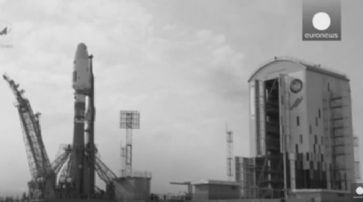 Zu Ehren des russischen Raumfahrtpioniers Juri Gagarin hatten die Hersteller der Sojus die Rakete mit einem riesigen Konterfei des ersten Menschen im All verziert. Das Porträt des Kosmonauten, der vor 55 Jahren - am 12.
