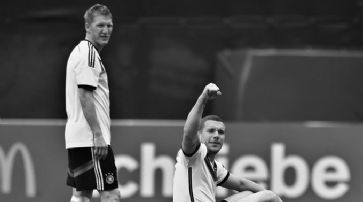 Angeführt wird das Aufgebot des dreifachen Europameisters von insgesamt 14 Weltmeistern, darunter auch Lukas Podolski und der angeschlagene Captain Bastian Schweinsteiger, hinter dessen EM-Teilnahme allerdings noch ein Fragezeichen steht. Der Mittelfeldspieler von Manchester United hatte sich Mitte März am Knie verletzt und befindet sich seither im Aufbautraining. Ebenfalls im Aufgebot steht Mario Gomez. Der Stürmer von Besiktas Istanbul wurde für die WM 2014 in Brasilien nicht berücksichtigt. Petkovic gibt Aufgebot am Mittwochnachmittag bekannt Deutschland trifft an der EM-Endrunde (10. Bastian Schweinsteiger (links) und Lukas Podolski (rechts) sind seit Jahren ein wichtiger Bestandteil der deutschen Nationalmannschaft. /