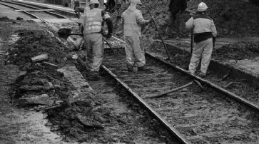 Geröll rutschte 150 Meter breit auf die Schienen. (Symbolbild) /