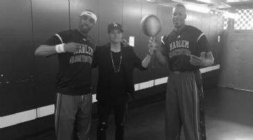 Was sind die Harlem Globetrotters? Hacksaw: «Ich würde sagen unglaubliches Talent. Sie werden ein paar der grossartigsten Athleten zu Sehen bekommen. Aber unsere Mission ist es den Zuschauern gute Unterhaltung zu bieten. Nicht nur ein grossartiges Basketball-Spiel werdet ihr sehen, wir versprechen euch, dass ihr die Arena mit grossartigen Erinnerungen verlassen werdet. Jedes Mal wenn ich in die Menschenmenge blicke sehe ich kleine Kinder mit einem Lachen im Gesicht und daneben ein 90ig-jähriger mit dem gleichen Ausdruck. Jedermann erfährt gute Unterhaltung, wenn sie uns zusehen.» Cheese: «Grossartiges Familienvergnügen!» Was waren Gründe die euch dazu bewegt haben, dieses Leben anstelle von einer Profikarriere zu wählen? Cheese: «Also ja, eigentlich ist das ja eine Profikarriere. Einfach nicht in der NBA. Es gibt verschiedene Ligen wie die NBA, die FIBA und die Harlem Globetrotters. Ich spiele seit meinem sechsten Lebensjahr Basketball. Ich habe es so sehr geliebt und ich wollte immer eine Arbeit verfolgen welche ich liebe. Die Harlem Globetrotters haben mir die Möglichkeit gegeben die Welt zu bereisen und Personen in jedem Alter mit bleibenden Erinnerungen zu beschenken. Ich liebe meinen Job und würde ihn für nichts auf der Welt eintauschen.» Hacksaw: «Ich schliesse mich dem voll und ganz an. Ich ebenfalls spiele Basketball seit ich sechs Jahre alt war. In den letzten sechs Jahren war ich in 35 verschiedenen Ländern. Es ist eine unglaubliche Möglichkeit die Welt zu bereisen. Auf diesem Weg ist es mir Möglich verschieden Kulturen kennenzulernen und meinen Horizont zu erweitern.» Könnt ihr mir einen Tag aus dem Leben eines Globetrotters beschreiben? Cheese: «Zum Beispiel gestern waren wir in... warte ich erinnere mich nicht (beginnt zu lachen). Ich habe vergessen wo ich gestern war. Das ist crazy. Oh ja! Wir waren im Wembley Stadion in London, oh mein Gott, wer vergisst so etwas. Das Team aus Harlem kennt die magische Formel ein Lächeln auf die Gesichter der Fans zu zaubern. /