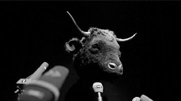 Immer dabei: Das Stier-Maskottchen bei der Preisverleihung. /