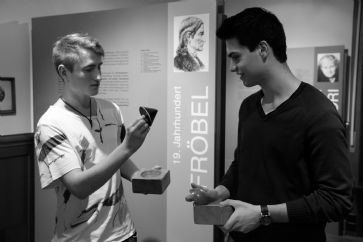 ![]() Der Verlauf von 300 Jahre Kinderkultur wird mit Hilfe der drei Pädagogen Pestalozzi, Fröbel und Montessori gezeigt. /
