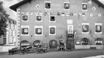 Die Geschichte des BerghotelsDas 3-Sterne-Hotel Crusch Alva gehört mit seinem über 500 Jahre währenden Bestehen zu den ältesten gastronomischen Stätten der Schweiz. Ursprünglich diente es als Rechtswirtshaus, also ein Ort der Rechtsprechung. Um 1500 erbaut, wurde das Haus im Verlauf der Jahrhunderte mehrfach umgestaltet, sodass sich überall architektonische Spuren finden lassen. Das gilt beispielsweise für die Barockstube, mit ihrer geschweiften Decke und Nussbaum-Buffet. Sie lässt sich auf Mitte des 18. Jahrhunderts datieren. Der Einbau der Obergeschossstuben, die heute die Gästezimmer beherbergen, fand 1735 statt. Die markante Fassade des Gebäudes wurde 1907 aquarelliert. Das Hotel Crusch Alva gehört zum Verband der Swiss Historic Hotels und steht heute unter Denkmalschutz.Das erwartet die Gäste des Hotels Crusch AlvaDank Renovierung und Modernisierungsmassnahmen in der jüngeren Vergangenheit, bietet das Hotel Crusch Alva allen zeitgemässen Komfort. Für die Gäste stehen Einzel-, Doppel- und Familienzimmer für bis zu vier Personen zur Verfügung. Die dominierende Ausstattung mit Arvenholz gehört zu den regionalen Besonderheiten, die sich im Crusch Alva widerspiegeln. Der Blick aus den Zimmern fällt wahlweise auf die Engadiner Bergwelt oder den historischen Dorfplatz von Zuoz.Das Hotel Crusch Alva befindet sich am historischen Dorfplatz von Zuoz. /
