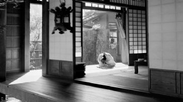 In der Ästhetik Japans erkennt Werner Bischof Themen aus seinem Frühwerk: die Freude an der Natur und der Schönheit und die Liebe zur klaren Formensprache. Und so oszillieren seine Japan-Bilder zwischen formaler Perfektion und einer engagierten Lektüre der Welt. Sein Freund und Fotograf Ihei Kimura führt ihn in die Geheimnisse der japanischen Kultur ein. Ein Priester im Ryoanji-Tempel, Kyoto, Japan, 1951. / Foto: Magnum Photos/Werner Bischof