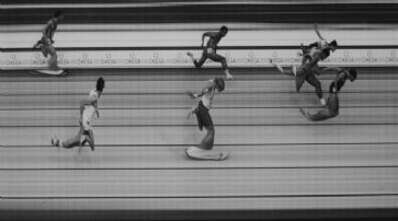 In der Zwischenkriegszeit, angesichts der Wirtschaftskrisen, fand das Know-how der Schweizer Uhrmacherei eine Diversifizierung in der Herstellung von Fotoapparaten. Von der Fotografie zur Uhrmacherei ist es zwar der Schritt von der Optik zur Chemie, aber vor allem die gemeinsame Basis der Präzisionsmechanik mit ihren Rädern, Federn, Hebeln, Zählern und millimetergenauen Schachtelungen. Athletissima, Lausanne, 110 Meter Hürden, Fotofinish Omega Photosprint II, 1985. /
