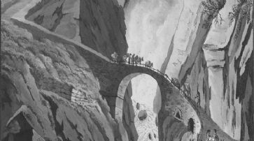 ![]() Die Teufelsbrücke war auch bei den auf ein touristisches Publikum ausgerichteten Landschaftsansichten ein beliebtes Motiv. Die grosse Bedeutung des Gotthards als Verkehrsweg zeigt sich in zahlreichen Landschaftsdarstellungen. Postkarte, Gruss von der Teufelsbrücke, 1904 Vue du fameux Pont du Diable, Christian von Mechel (1737 - 1817), um 1790 /