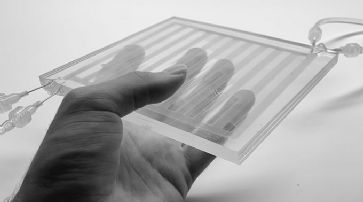 «Wenn wir die Menge, die Art und die Richtung der Sonnenenergie, die in unsere Gebäude eindringt, strategisch steuern können, können wir die Energie, die Heizungen, Kühler und Lampen verbrauchen, massiv reduzieren. Gegenwärtig können bestimmte »intelligente« Gebäudetechnologien wie automatische Jalousien oder elektrochrome Fenster - die ihre Lichtundurchlässigkeit als Reaktion auf einen elektrischen Strom verändern - eingesetzt werden, um die Menge des in den Raum einfallenden Sonnenlichts zu steuern. Laut Kay sind diesen Systemen jedoch Grenzen gesetzt: Sie können nicht zwischen verschiedenen Wellenlängen des Lichts unterscheiden und auch nicht steuern, wie das Licht räumlich verteilt wird. Wärme und Licht getrennt voneinander regeln»Mitten am Tag im Winter möchte man wahrscheinlich beides einlassen - aber mitten am Tag im Sommer möchte man nur das sichtbare Licht und nicht die Wärme einlassen. Heutige Systeme können das in der Regel nicht - sie blockieren entweder beides oder keines davon. Sie haben auch keine Möglichkeit, das Licht auf nützliche Weise zu lenken oder zu streuen.Die Prototypen bestehen aus flachen Kunststoffplatten, die mit einer Reihe von millimeterdicken Kanälen durchzogen sind, durch die Flüssigkeiten gepumpt werden können. Massgeschneiderte Pigmente, Partikel oder andere Moleküle können in die Flüssigkeiten gemischt werden, um zu steuern, welche Art von Licht durchgelassen wird - z. Prototypen eines mehrschichtigen Fluidsystems enthalten mehrere Schichten von Kanälen, die Flüssigkeiten mit unterschiedlichen optischen Eigenschaften enthalten (künstlerische Darstellung mit freundlicher Genehmigung von Raphael Kay, Adrian So) /