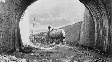 ![]() Adolphe Braun, Bau der Gotthardbahn, Tunneleingang in Airolo, 1881-1882, Albuminpapier. /
