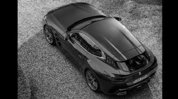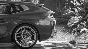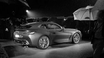 Das Concept Touring Coupé basiert auf dem BMW Z4 Roadster, hat aber ein festes Dach, das ihm eine sportliche und dynamische Silhouette verleiht. Die Proportionen sind typisch für einen BMW: lange Motorhaube, kurze Überhänge, weit nach hinten versetztes Greenhouse und muskulöse Radhäuser. Die Karosserie ist in einem exklusiven Farbton namens Sparkling Lario Metallic lackiert, der mit Akzenten in Silberbronze kontrastiert. Die 20- bzw. 21-Zoll grossen Felgen im 20-Speichen-Radialdesign glänzen mit einem sanften Goldton.