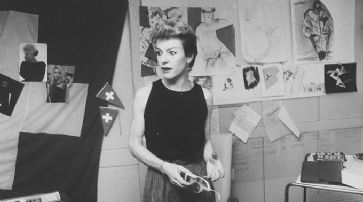 ![]() Ursula Rodel in ihrem Atelier über dem Laden von Thema Selection an der Weiten Gasse 9 in Zürich. Sie wird von ihren ehemaligen Kolleginnen als eine unermüdliche und gewissenhafte Schwerarbeiterin bezeichnet. Foto von Candid Lang, undatiert. /