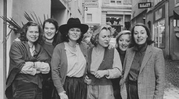 ![]() Illustrer Besuch: Der Laden von Thema Selection in Zürich ist ein Treffpunkt für die Prominenz aus Kunst und Kultur. Als Ursula Rodel Kostüme für den Film «Violanta» (1977) von Daniel Schmid entwirft, bekommen sie Besuch der Hauptdarstellerin Lucia Bosè. V. l. n. r. Uta Dietrich, Sissi Zöbeli, Lucia Bosè, Ursula Rodel, Elisabeth Bossard, Christa Derungs. /