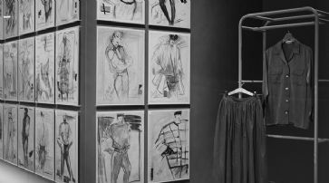 ![]() Die Kollektionszeichnungen zeigen das grosse zeichnerische Können von Ursula Rodel. Virtuos setzt sie Stift und Kreide ein. In der Regel beginnt sie beim Kopf, stellt sich eine Trägerin vor, und dann entwickelt sie Körper und Kleidung. Nur ein Bruchteil der Zeichnungen werden als Kleider realisiert. Die meisten liegen im sogenannten Look-Book im Laden als Inspiration für die Kundinnen auf. Kollektionszeichnungen um 1980. /