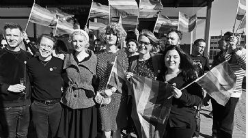 ![]() Die Lesbenorganisation Schweiz (LOS) und Pink Cross feiern die Annahme der Volksabstimmung zur erweiterten Antirassismus-Strafnorm. Bern 2020. /