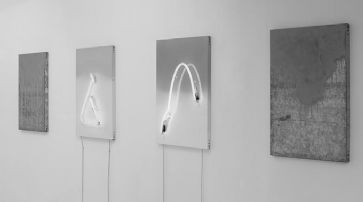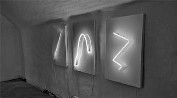 Emanuel Mooner macht aus dem, was andere wegwerfen, Kunst. Er kombiniert Neonröhren, die früher Werbeschriften waren, mit Autoteilen, die bei Unfällen verbeult wurden. So entstehen Objets Trouvé, die so wirken, als sei ihre spontane Form in der Kombination beabsichtigt. Die Neonröhren leuchten auf dem verbeulten Blech und erzeugen neue Formen und Muster.