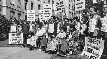 Bilder bewegter ZeitenDie Ausstellung «Lichtblick» zeigt eindrucksvoll, wie politische und gesellschaftliche Bewegungen der 1970er-Jahre und der Gegenwart in fotografischen Aufnahmen festgehalten werden. Der Nachlass der Agentur Kurt Graf/fotolib Basel präsentiert die vielfältigen Proteste und Bewegungen um 1975 aus einer persönlichen Perspektive. Zeitgenössische Fotograf:innen ergänzen dies mit ihren Bildern zu Themen wie Arbeit, Gleichberechtigung, Antimilitarismus, Wohnformen und Energie/Umwelt.Der Nachlass von Kurt Graf/fotolib Basel ist eine bildliche Dokumentation von politischen Bewegungen, Ereignissen und Ideen, die in den 1970er Jahren eine ganze Generation in der Schweiz geprägt haben. Ab 1975 haben Kurt Graf, Heiner Vogelsanger und Marcel Geiger als Fotografen-Kollektiv Widerstand und Protest, Aufbruch und Utopien dokumentiert. Der Beginn war die Besetzung des AKW-Baugeländes in Kaiseraugst im April 1975. Die analogen Schwarz-Weiss-Fotografien wurden erstellt, um das Engagement festzuhalten und einer breiten Öffentlichkeit bekannt zu machen. Kommunikation zwischen historischer und zeitgenössischer FotografieWas ist von dem Schwung der 1970er Jahre übrig geblieben, wie zeigen sich die damaligen Bewegungen heute und welche Eindrücke bestimmen unsere Gegenwart? BelleVue hat diverse Fotograf:innen und Gruppierungen, hauptsächlich aus dem Raum Basel, darum gebeten, aktuelle Fotos zu den Themen der Ausstellung beizutragen.Die grösseren zeitgenössischen Fotografien in der Ausstellung sind wie ein Brainstorming von Gedanken angeordnet. Sie sind eigenständig und eher symbolisch im Ausdruck, und beschreiben bestimmte Zustände unserer Gesellschaft. Daneben werden kleinere, dokumentarische Bildformate präsentiert, die zu den Themen der Ausstellung passen: Aktionen, Demonstrationen, Projekte und das Engagement der Menschen im Kleinen und Grossen für ihre Herzensangelegenheiten. Die alten Bilderserien berichten von vergangenen Ereignissen und zeugen von einem Neuanfang in verschiedenen Lebensbereichen. In den Berichten über die Zentralwäscherei wird die Anstrengung der Arbeit deutlich: Berge von Wäsche, Förderbänder, viele Frauen, hauptsächlich Migrantinnen, die gemeinsam arbeiten. SMON-Opfer, Demonstration gegen Ciba Geigy, Basel 1977. /
