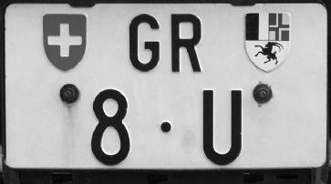Ein «Z» am Ende der Nummer steht für «Zollschild»Kfz-Kennzeichen, die mit einem «Z» am Ende versehen sind, haben eine zeitliche Begrenzung und werden vom Zoll herausgegeben. Die Zahl im roten Feld gibt Auskunft darüber, wie lange die Gültigkeit des Kennzeichens dauert. Diese Kennzeichen werden zum Beispiel für nicht verzollte Fahrzeuge ausgegeben, die sich nur vorübergehend in der Schweiz aufhalten. Nach Ablauf der festgelegten Frist verliert das Kennzeichen seine Gültigkeit.Befristete KontrollschilderSeit 1960 existieren auch temporäre Kennzeichen. Diese sind für importierte, verzollte Fahrzeuge bestimmt, die vorübergehend beim örtlichen Strassenverkehrsamt im Kanton angemeldet werden. Sie sind mit einem langen roten Aufkleber versehen, auf dem das zweistellige Ablaufjahr mehrmals in winziger Schrift erscheint, darüber gut sichtbar der Ablaufmonat gedruckt ist.Früher gab es auch die Verwendung eines «V» am Ende der Autonummer, welches Mietfahrzeuge kennzeichnete. Aufgrund einer Richtlinie dürfen Mietfahrzeuge heute jedoch nicht mehr anhand des Kennzeichens erkennbar sein. Händler Kontrollschild aus Graubünden mit dem «U» am Ende. /