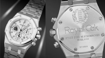 Jean Todt übergab Michael Schumacher kostbare Geschenke, die bei einer Auktion für beträchtliche Summen verkauft wurden. Eines dieser Geschenke war eine Audemars Piguet «Royal Oak» Chronograph, der anlässlich von Schumachers sechstem WM-Titel im Jahr 2003 von Todt überreicht wurde. Das Ziffernblatt ziert ein roter Helm, das Ferrari-Logo und sechs Sterne um die Zahl «1», die für jeden F1-Titel stehen. Der Verkaufspreis wurde auf 150.000 bis 250.000 Euro geschätzt, endete jedoch bei stolzen 425.779 Euro. Ein weiteres Geschenk von Todt war die «Vagabondage 1 Model» von F.P. Journe, die für etwa 1,5 Millionen Euro ersteigert wurde - weit über dem Schätzpreis. Die «Vagabondage 1 Model» Uhr aus dem Hause F.P. Journe brachte der Familie Schumacher umgerechnet 1,5 Mio. Euro. /