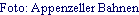 Brücken- und Fahrbahnerneuerungen zwischen Appenzell und WasserauenDie Appenzeller Bahnen (AB) erneuern vom 28. Oktober bis 22. November 2024 auf der Strecke Appenzell-Wasserauen die Fahrbahn sowie die Brüelbach- und die St. Annabrücke. Die Bahnübergange Weissbadstrasse und Bergerstrasse sind dafür zeitweise gesperrt, Umleitungen sind signalisiert. Die Weissbadstrasse wird an zwei Stellen einspurig geführt, Lichtsignalanlagen sind in Betrieb. Während der Bauarbeiten verkehrt ein Bahnersatzbus.et / Quelle: appenzell.im / Montag, 11. November 2024 / 17:15 h