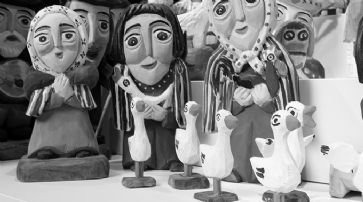 ![]() Die Königsberger Krippe ist reich an Tieren. Königsberger Krippe, Originalfiguren in nachgebauter Krippe, Kyn?perk nad Ohří, Tschechien, um 1900/2023 /