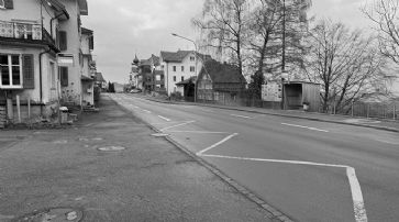 Die bestehende Bushaltebucht ist erforderlich, um die Erweiterung des Strassenquerschnitts für eine neue Fussgängerquerung mit einer Mittelinsel zu realisieren. Die Haltestelle Dorf in Wald in Appenzell wird sicherer und zugänglicher. /